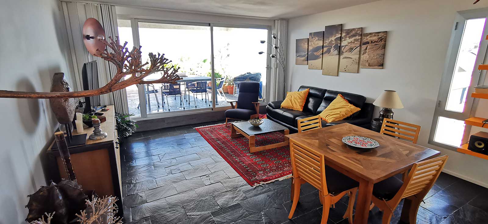 En Carboneras, descubre nuestros apartamentos totalmente equipados, para reservar un fin de semana, una semana o un mes. A orillas del mar, a un paso de la playa, fueron concebidos, amueblados y decorados para ser mucho más que esos alquileres vacacionales corrientes y sin encanto que se encuentran por todas partes. ¡Te dejarán un recuerdo inolvidable ! Cada apartamento, con su gran y hermosa terraza, puede alojar hasta 8 personas. Tu perro o mascota también será bienvenido. Los dos apartamentos se encuentran justo al borde de una encantadora playa familiar de arena fina vigilada y equipada con un área de juegos para niños.