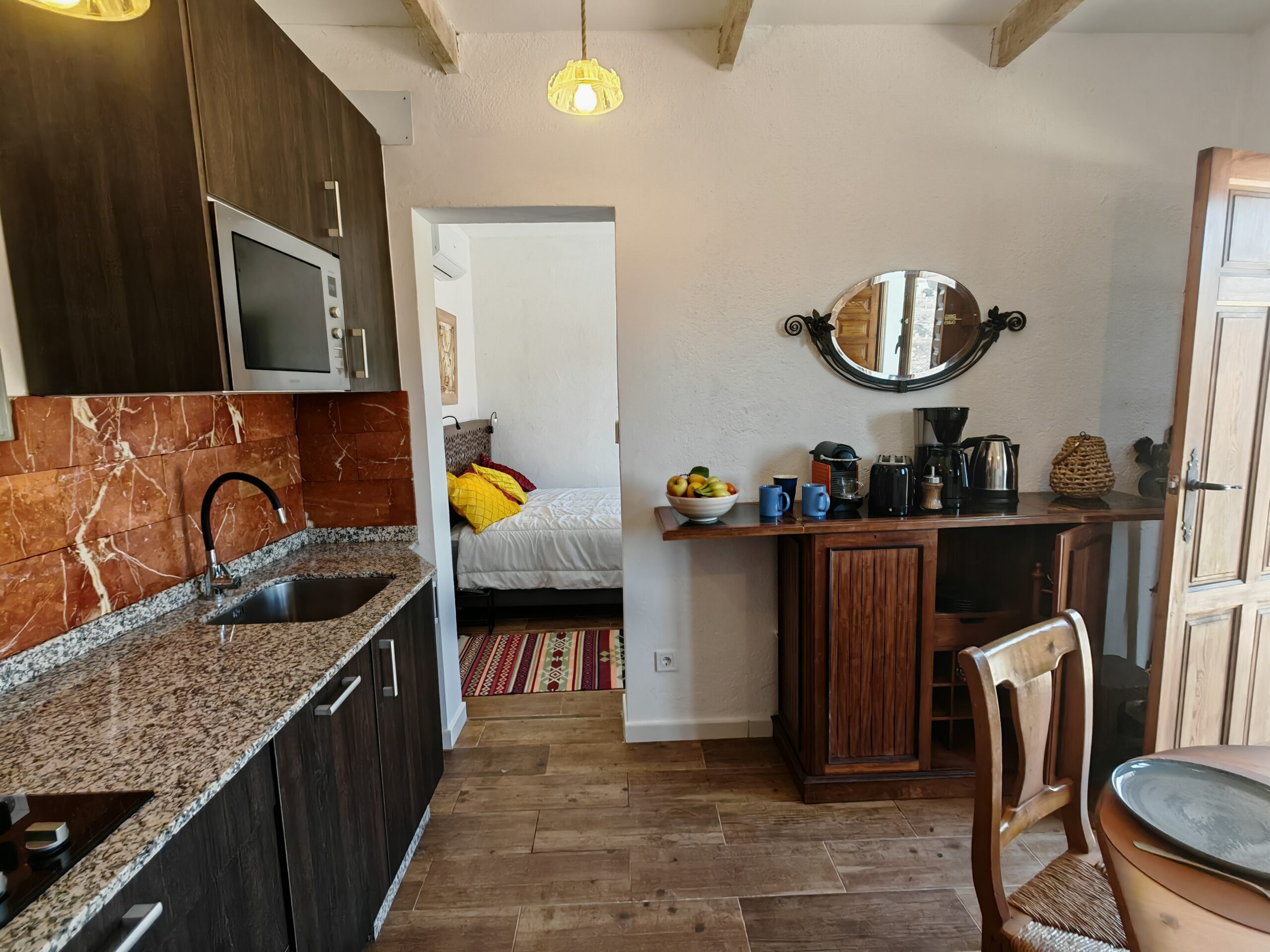 A solo 3,5 km del pueblo de Carboneras y sus playas, bonito estudio totalmente reformado y equipado, en un entorno tranquilo, con todas las comodidades y una terraza con flores orientada al sureste.