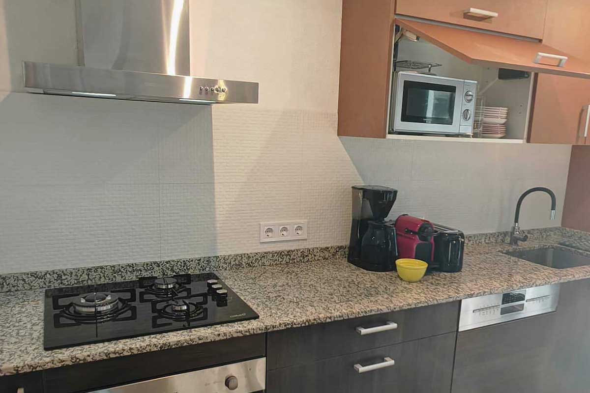 ◼️ Fully equipped kitchen-dining room with dishwasher, large fridge-freezer, microwave and traditional oven, hob, numerous kitchen utensils, Nespresso coffee machine, American coffee maker, toaster, electric kettle, and barbecue.